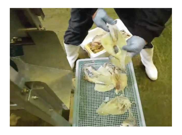- ●Opens squid cleanly with a circular blade without damaging the internal organs