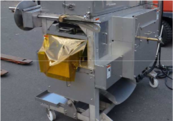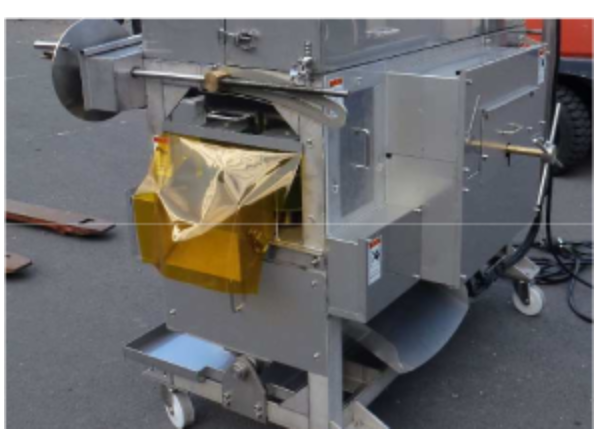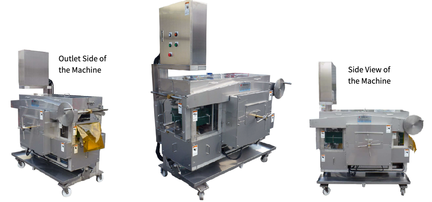 - ● The machine opens from the center, allowing easy maintenance of the round blades and conveyor belt.