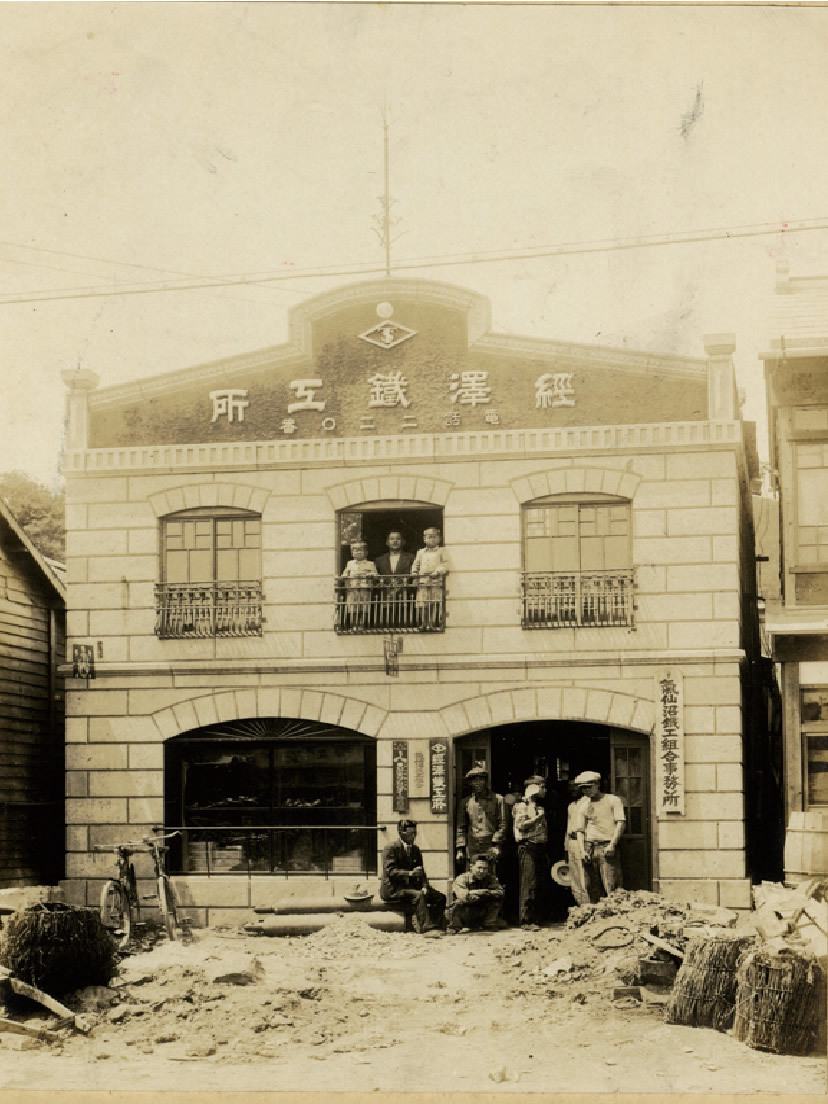 | Meiji | 43 | Founder Toyo Tsunezawa focused on the problem of bamboo cores burning in grilled chikuwa, devised a metal core using tinplate, and jointly obtained a patent for a chikuwa extrusion machine. Established Tsunezawa Iron Works in Uomachi 1-chome, Kesennuma City, and began manufacturing the machine. Later engaged in repairs of marine internal combustion engines and began research on engine technology. |