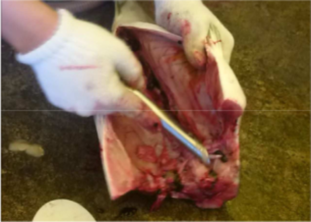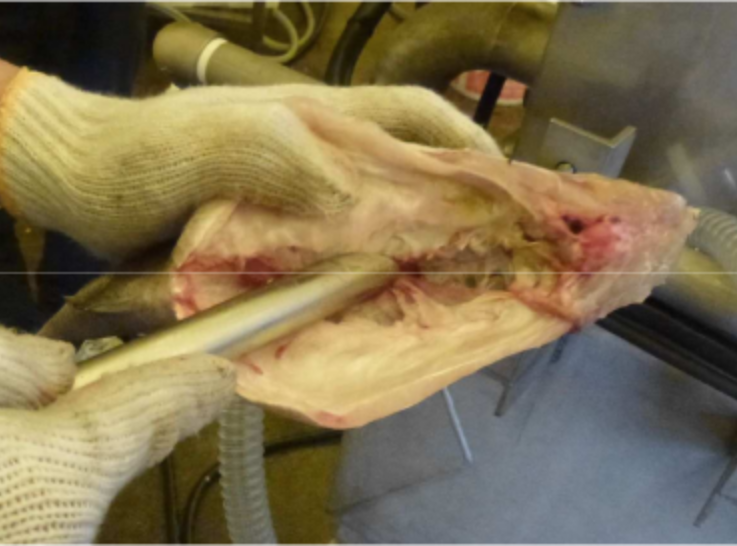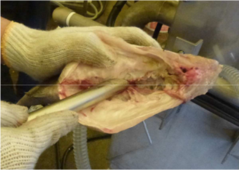 - ●Removed internal organs are collected in a tank, keeping the facility clean