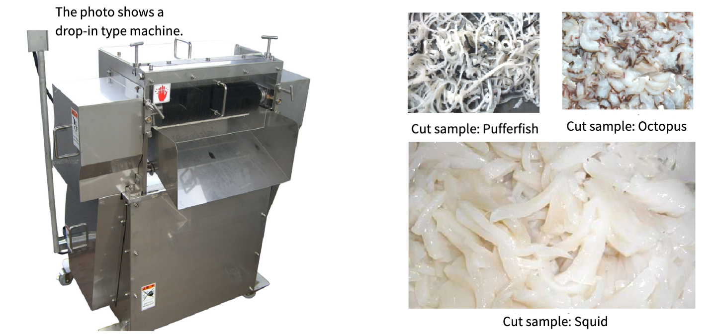 - ●Besides the drop-in type, chute-type and models for sea cucumber or pufferfish skin are also available.