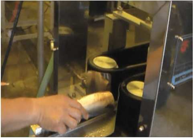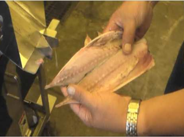 - ● 半解凍または生の中型魚を三枚に卸す専用機