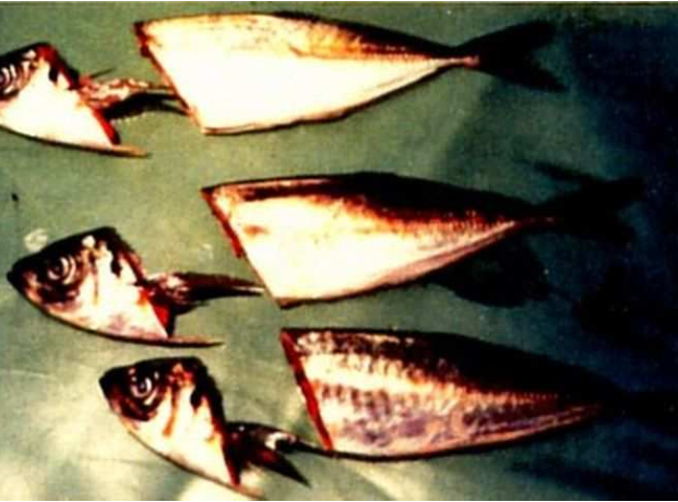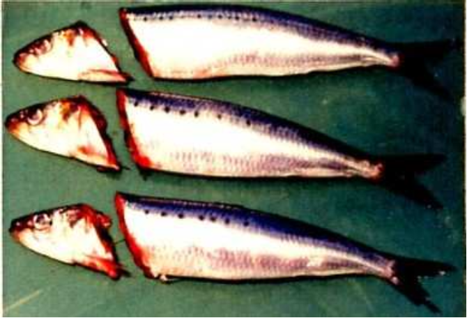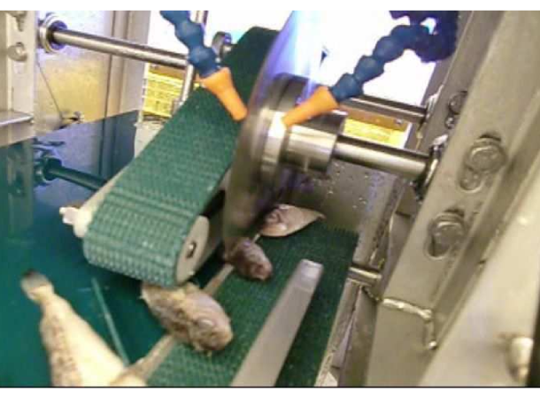 平たい小魚の頭部を効率よくカット。ベルトで押さえて正確な切断が可能です。