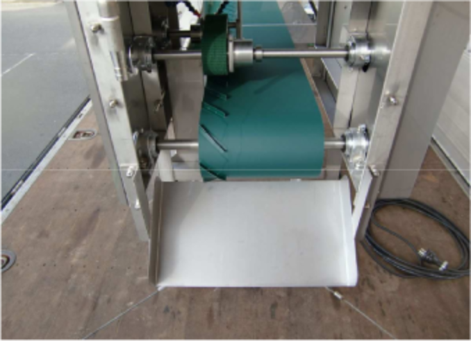 - ●ベルトで原料を押さえながら丸刃で正確に頭部をカット