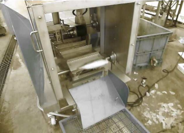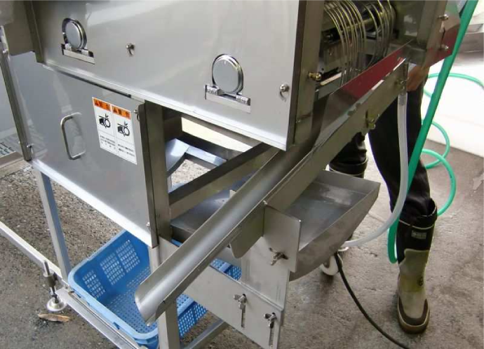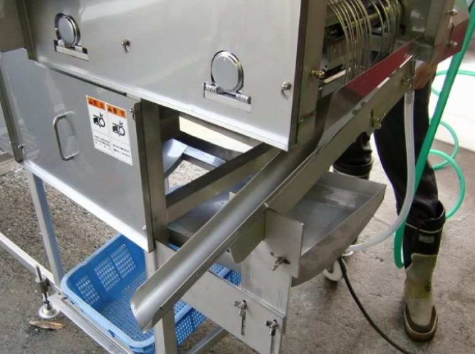 - ●ラウンドの原料をバケットに乗せて、頭部を丸刃でカットする機械です