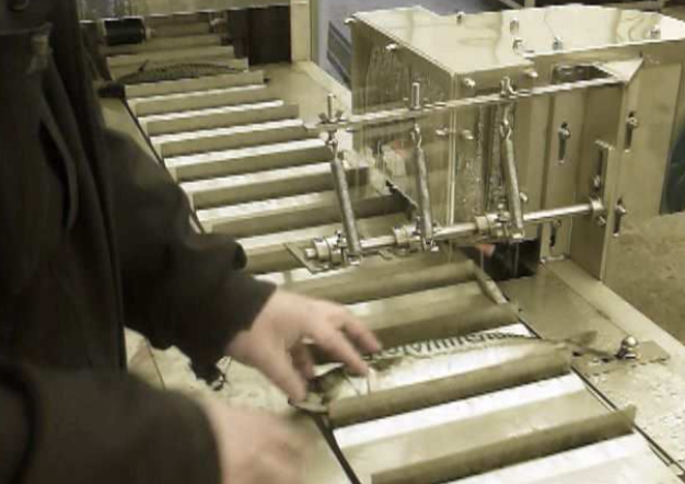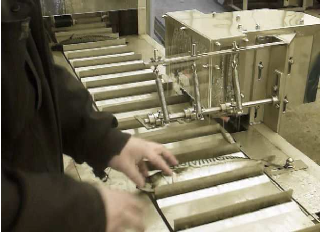 - ●原料頭部の先端をガイドに合わせてバケットに乗せるので、歩留まり良くカットします