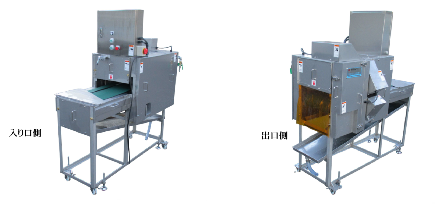 - ●原料の胸ヒレを入口ガイドにのせて前方に押し込んで加工
