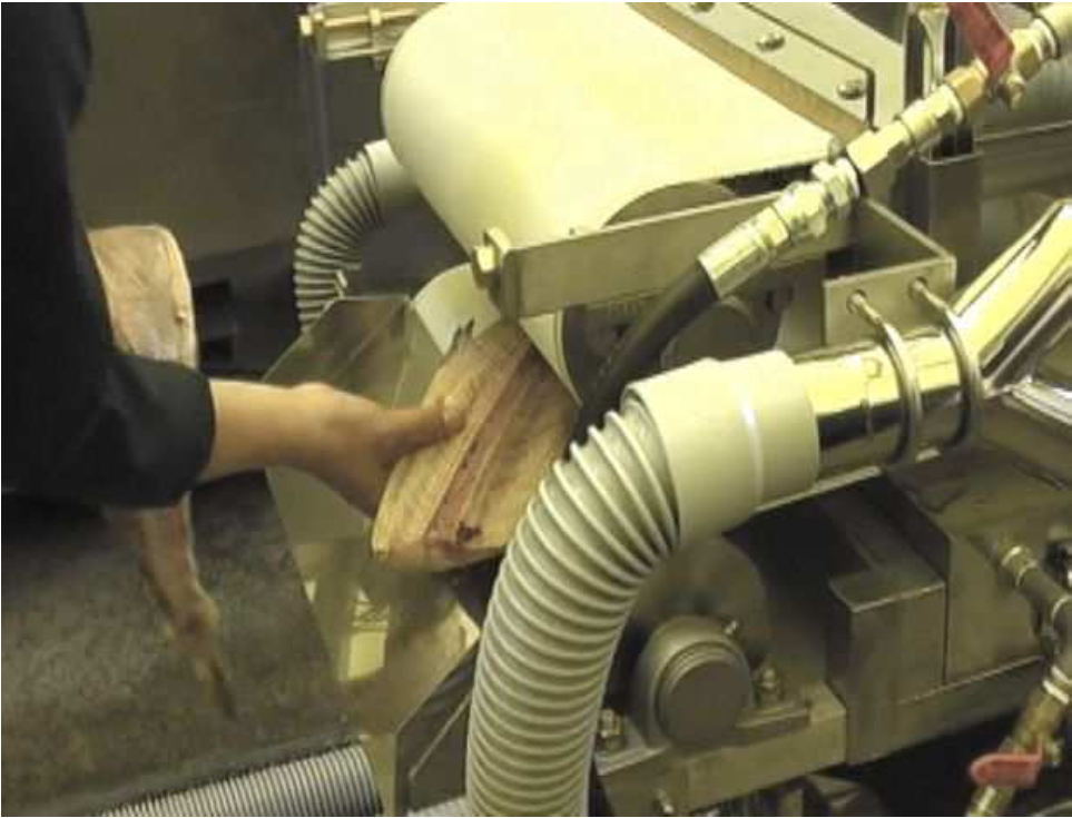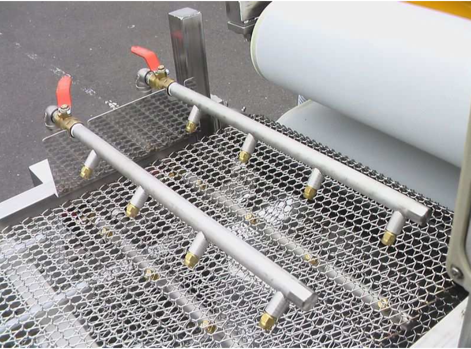 高圧水でフィーレ表面を洗浄し、その後強力なバキューム装置で水分を効率的に除去。